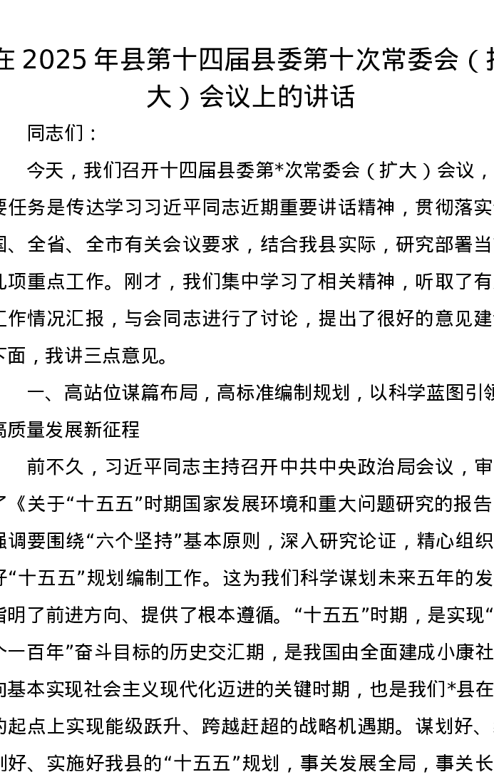 在2025年县第十四届县委第十次常委会(扩大)会议上的讲话