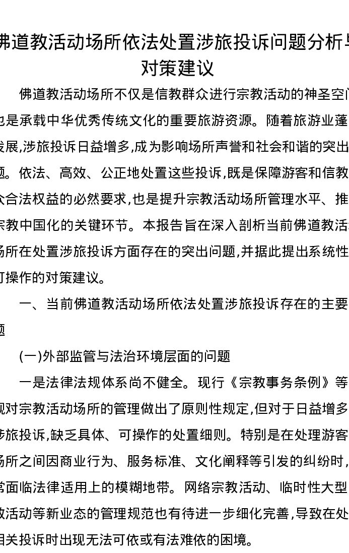 调研报告:佛道教活动场所依法处置涉旅投诉问题分析与对策建议