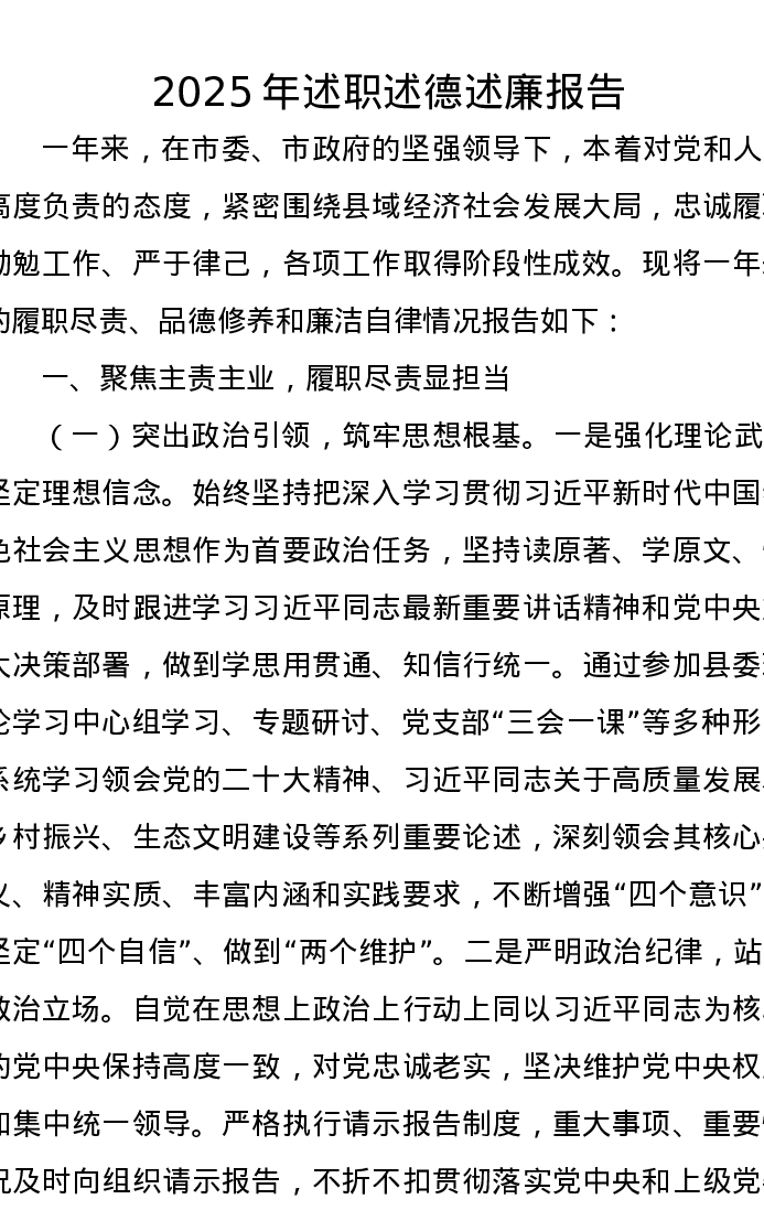 2025年述职述德述廉报告