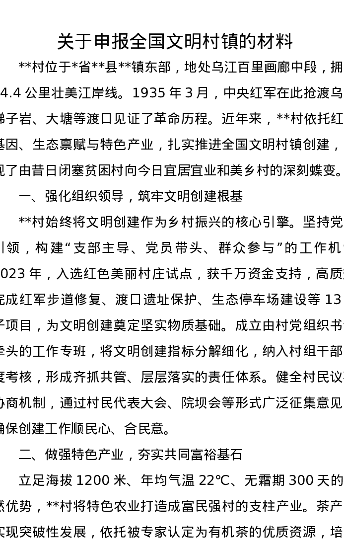 关于申报全国文明村镇的材料