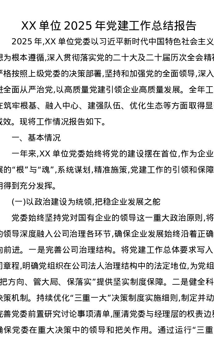 XX单位2025年党建工作总结报告