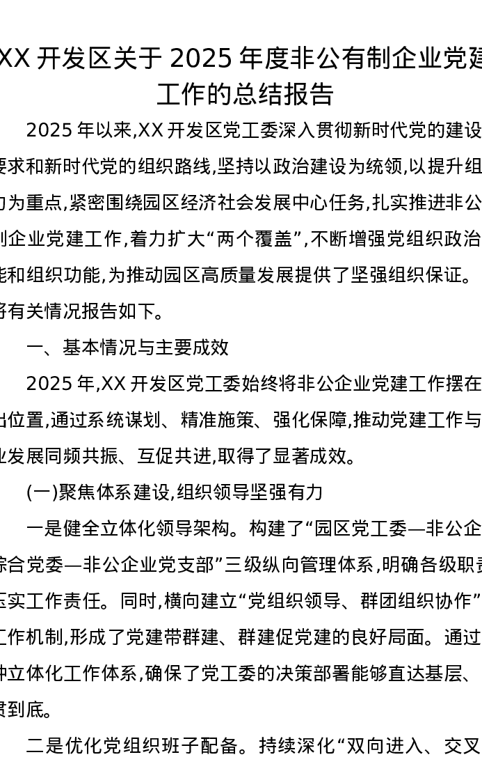 XX开发区关于2025年度非公有制企业党建工作的总结报告