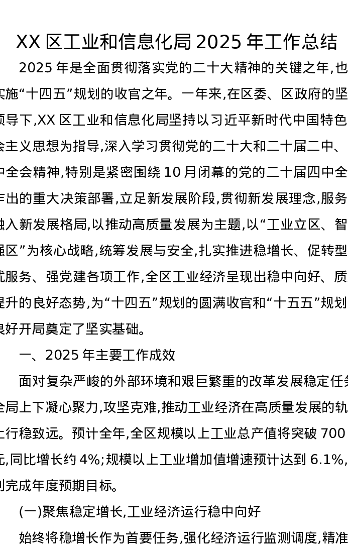 XX区工业和信息化局2025年工作总结