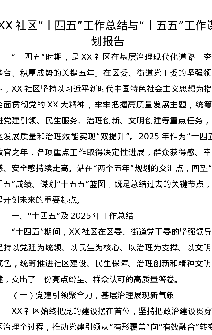 XX社区“十四五”工作总结与“十五五”工作谋划报告