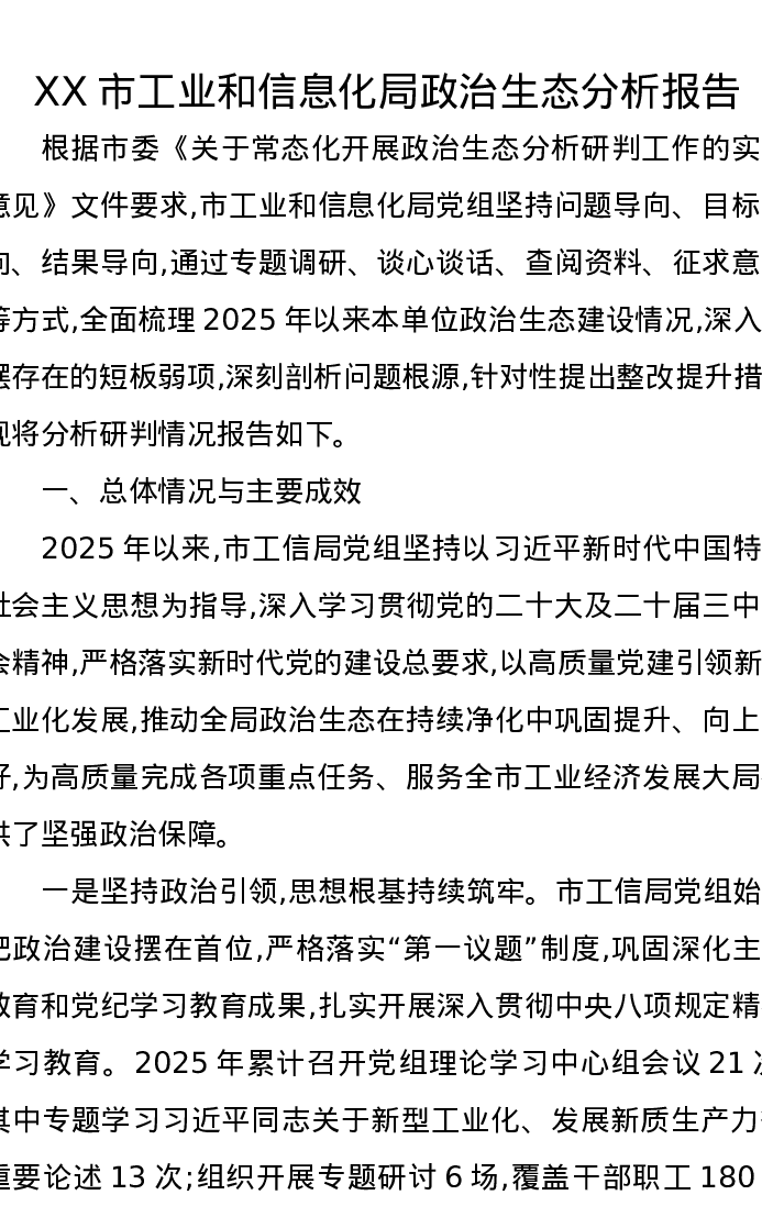 XX市工业和信息化局政治生态分析报告