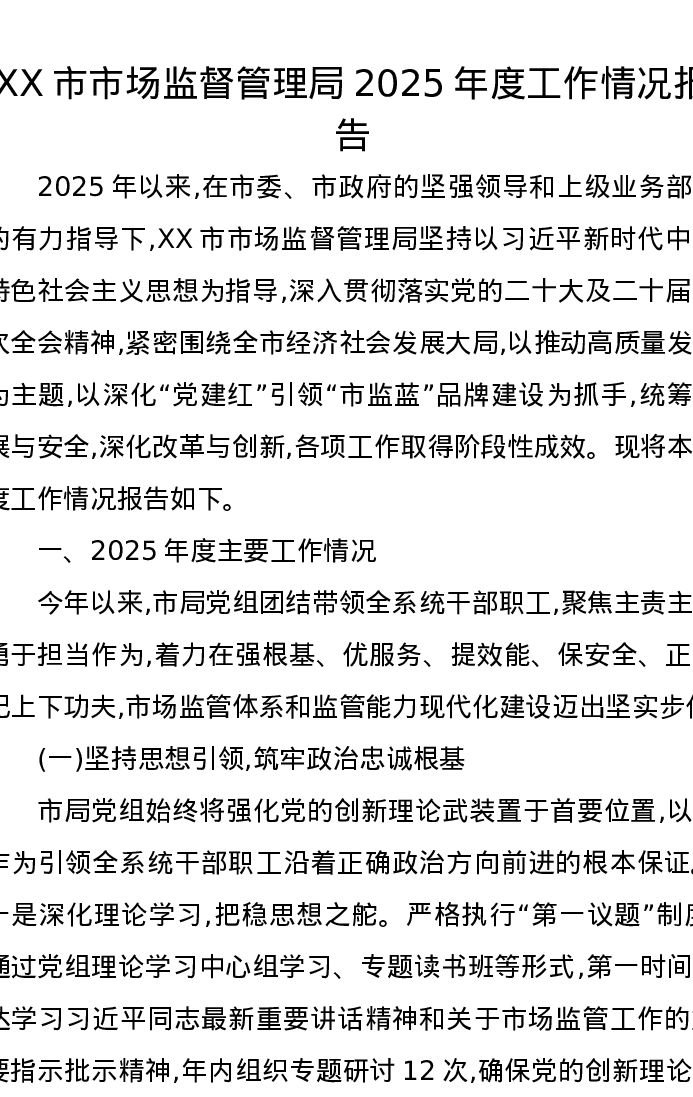 XX市市场监督管理局2025年度工作情况报告
