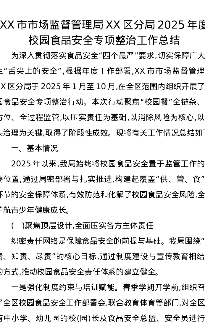 XX市市场监督管理局XX区分局2025年度校园食品安全专项整治工作总结