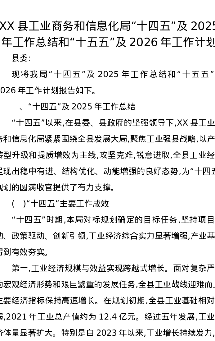 XX县工业商务和信息化局“十四五”及2025年工作总结和“十五五”及2026年工作计划