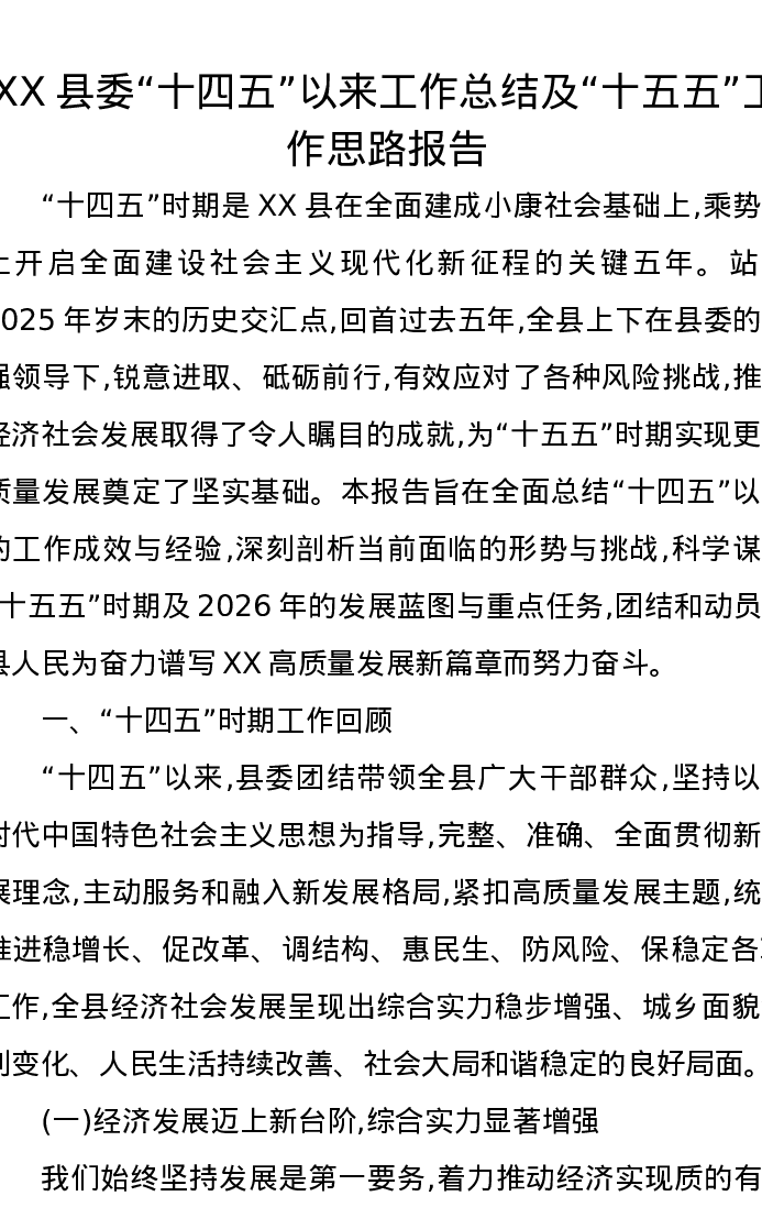 XX县委“十四五”以来工作总结及“十五五”工作思路报告