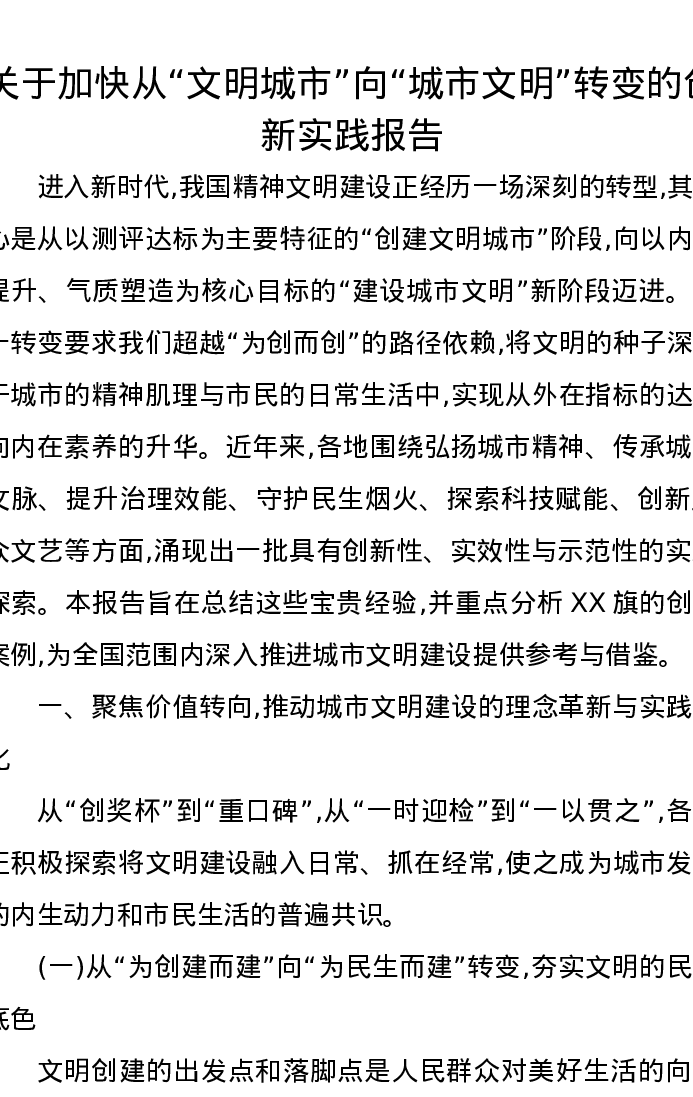 关于加快从“文明城市”向“城市文明”转变的创新实践报告