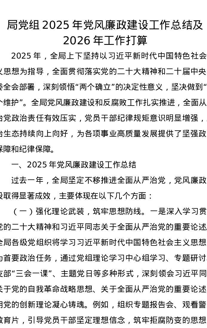 局党组2025年党风廉政建设工作总结及2026年工作打算