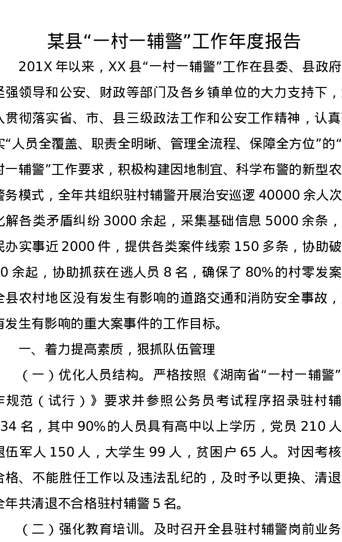 某县“一村一辅警”工作年度报告