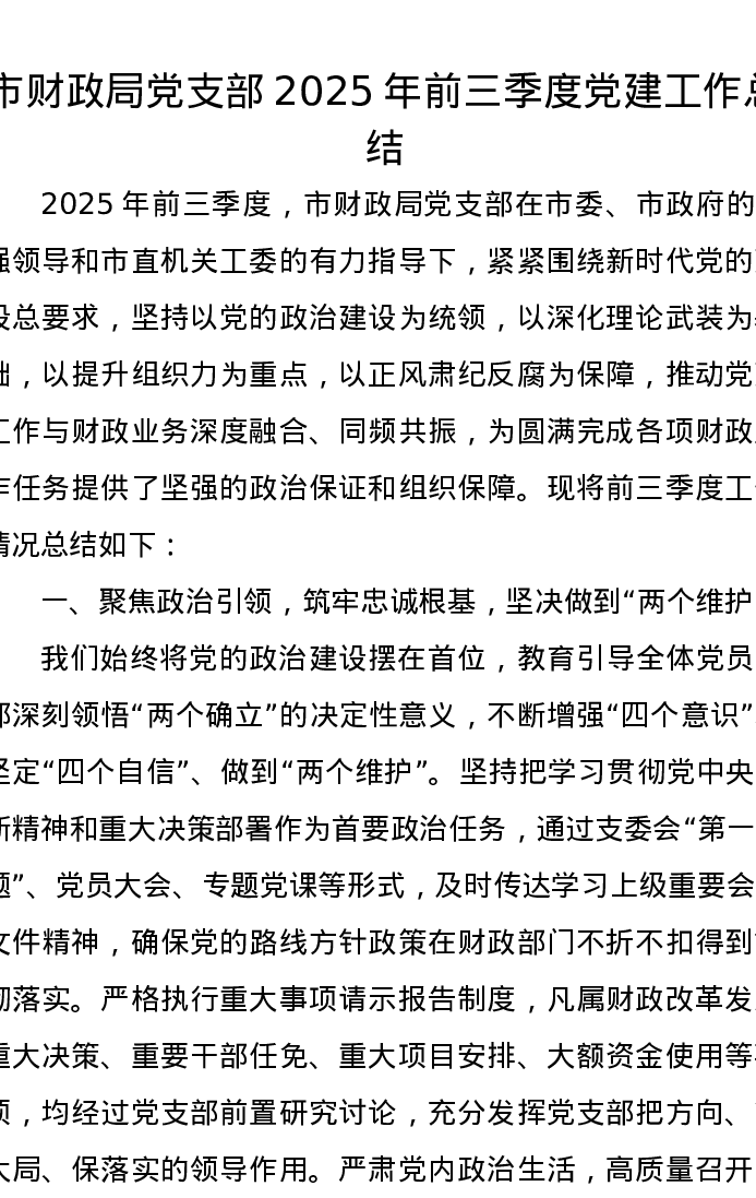 市财政局党支部2025年前三季度党建工作总结