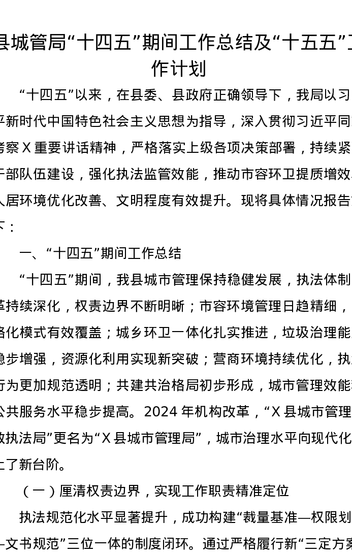 县城管局“十四五”期间工作总结及“十五五”工作计划