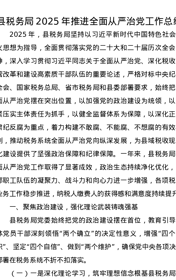 县税务局2025年推进全面从严治党工作总结