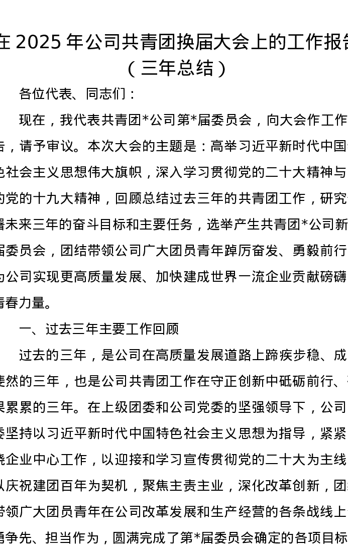 在2025年公司共青团换届大会上的工作报告(三年总结)