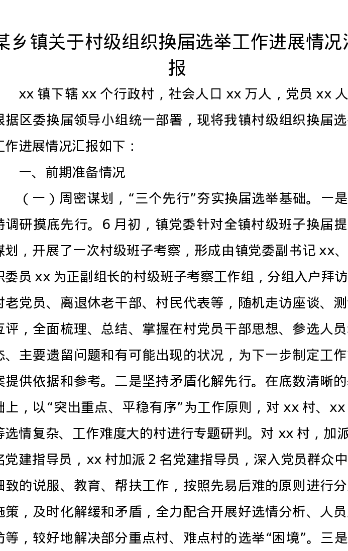 某乡镇关于村级组织换届选举工作进展情况汇报