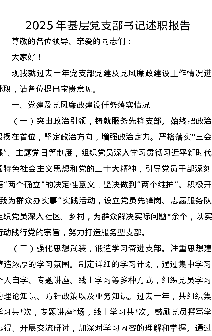 2025年基层党支部书记述职报告