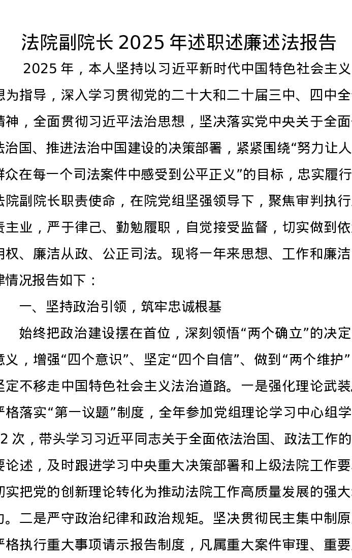 法院副院长2025年述职述廉述法报告