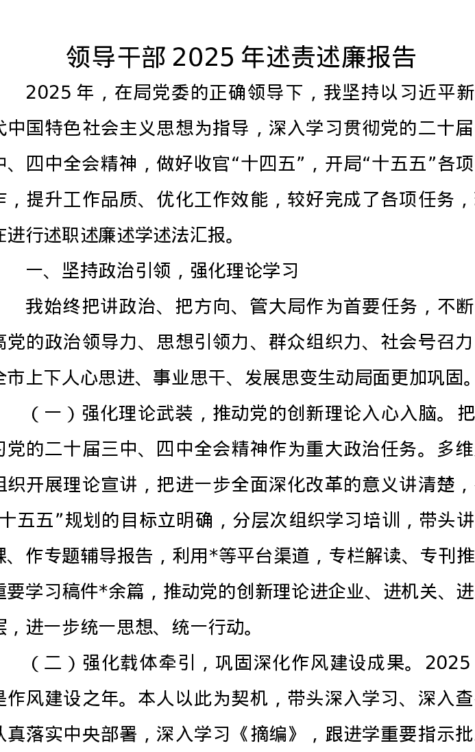 领导干部2025年述责述廉报告