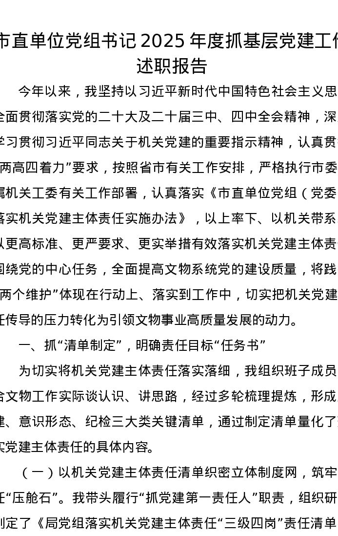 市直单位党组书记2025年度抓基层党建工作述职报告