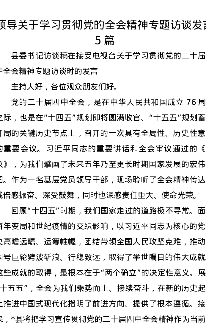 领导关于学习贯彻党的二十届四中全会精神专题访谈发言5篇