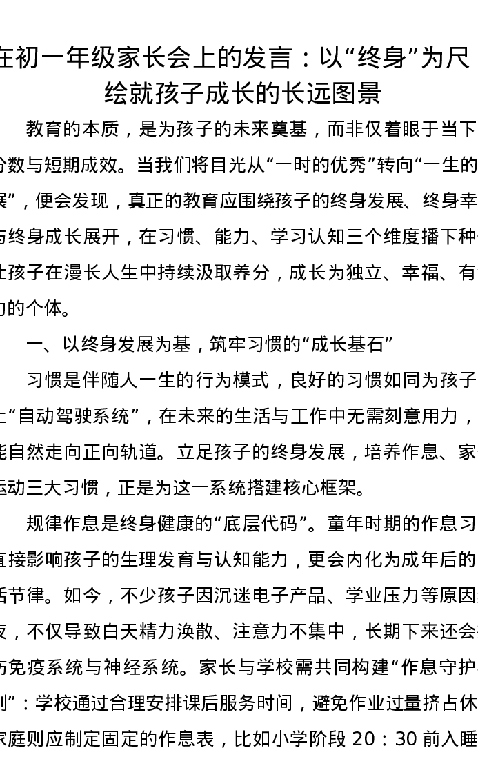 在初一年级家长会上的发言:以“终身”为尺,绘就孩子成长的长远图景