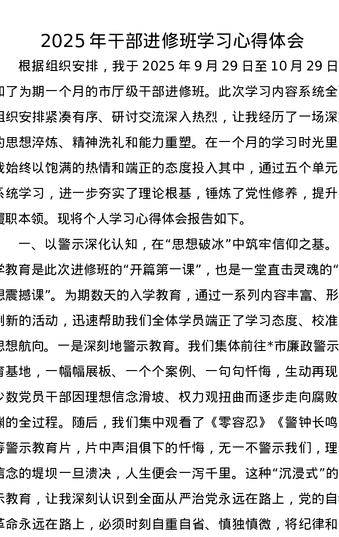 2025年干部进修班学习心得体会
