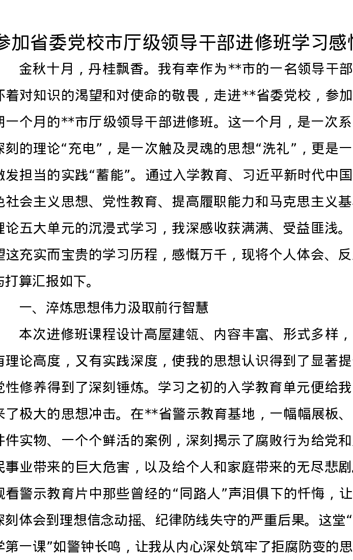 参加省委党校市厅级领导干部进修班学习心得感悟