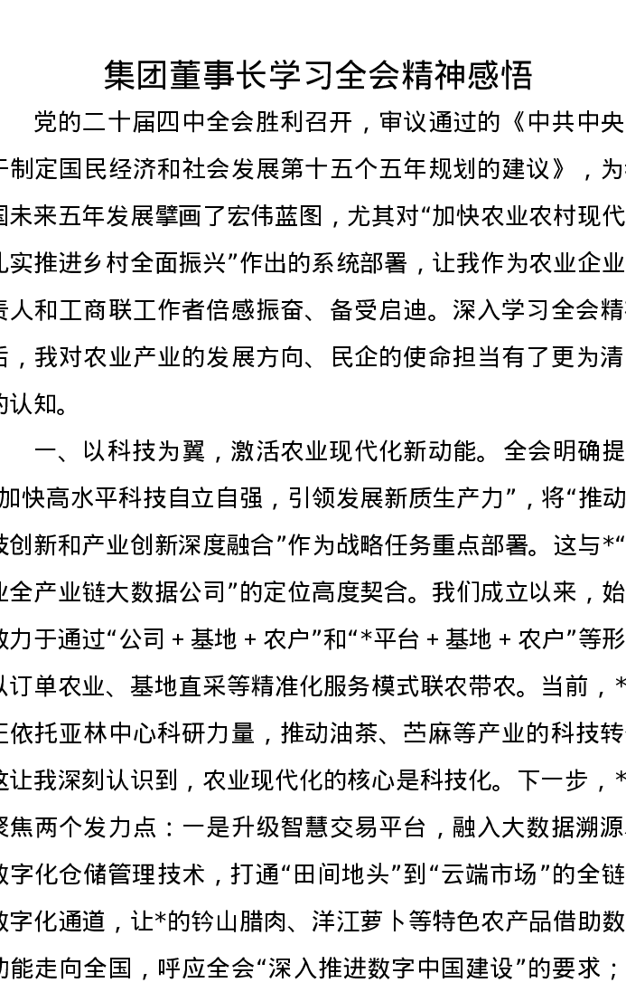 集团董事长学习二十届四中全会精神感悟
