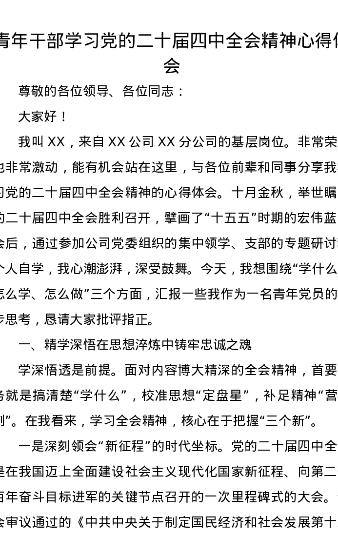 青年干部学习党的二十届四中全会精神心得体会