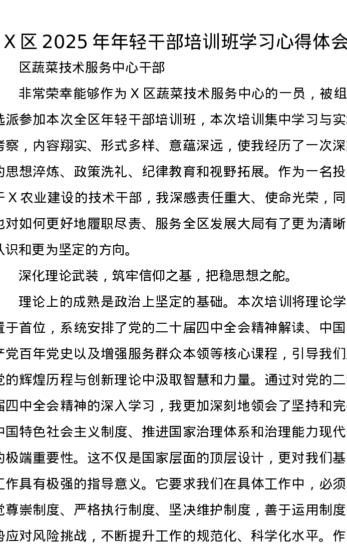 区蔬菜技术服务中心干部参加区2025年年轻干部培训班学习心得体会