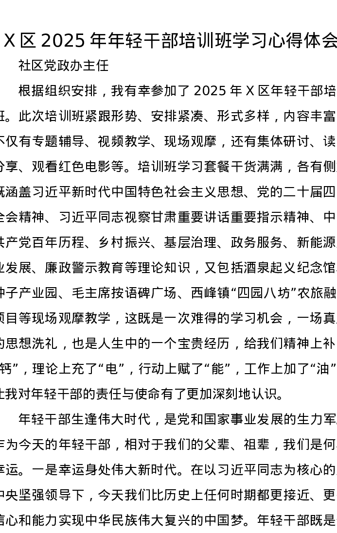 社区党政办主任参加区2025年年轻干部培训班学习心得体会