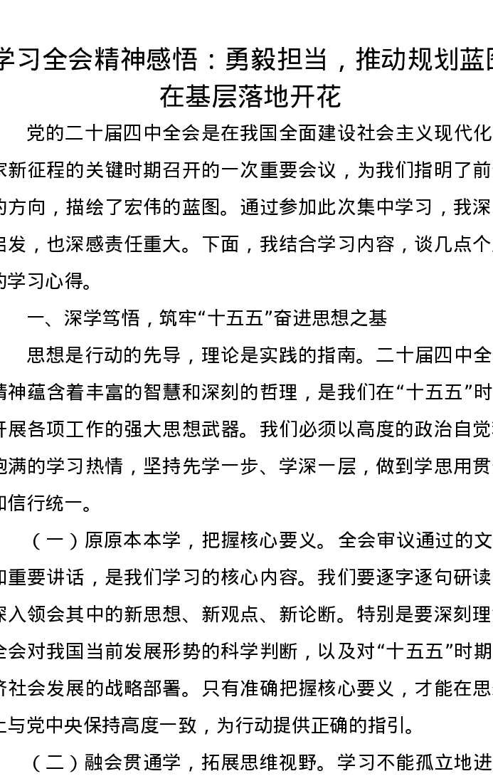 学习二十届四中全会精神心得感悟:勇毅担当,推动规划蓝图在基层落地开花