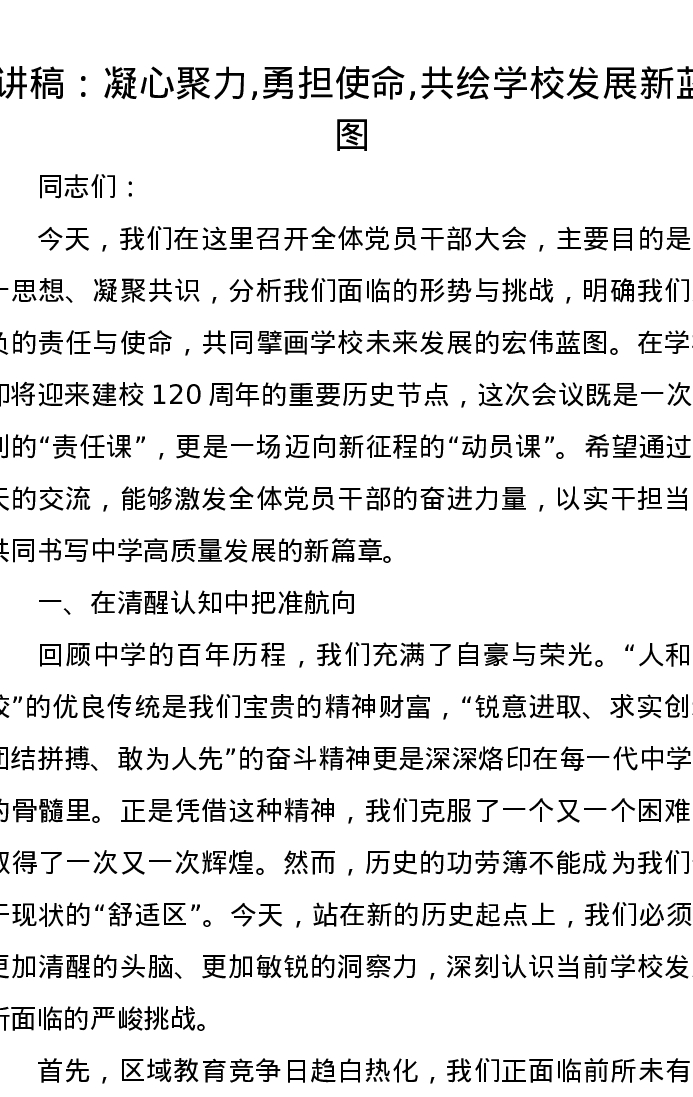 党课讲稿:凝心聚力,勇担使命,共绘学校发展新蓝图