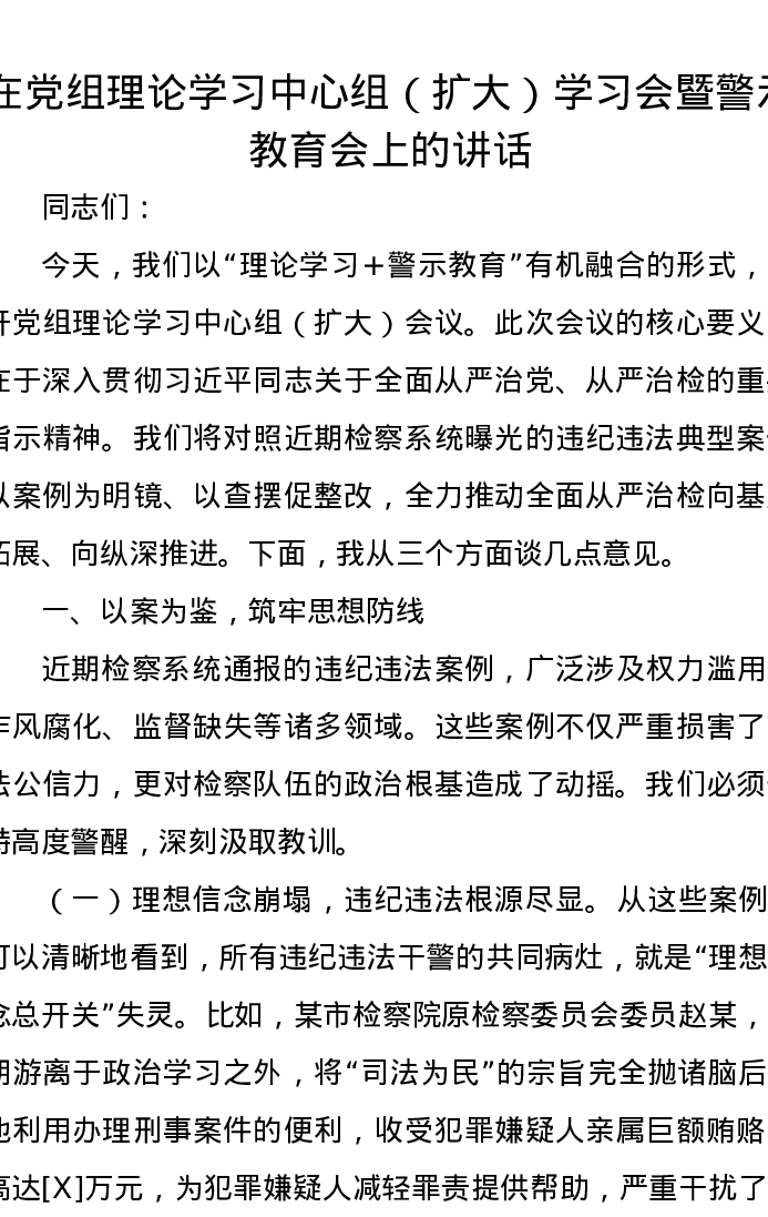 在党组理论学习中心组(扩大)学习会暨警示教育会上的讲话
