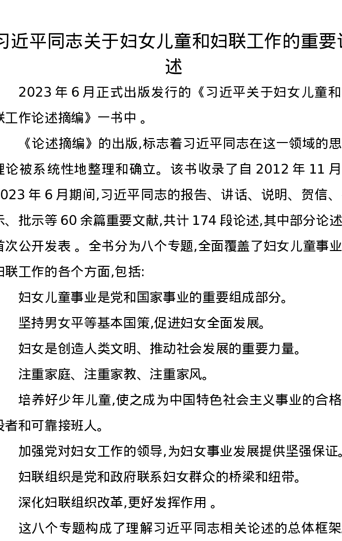 习近平总书记关于妇女儿童和妇联工作的重要论述