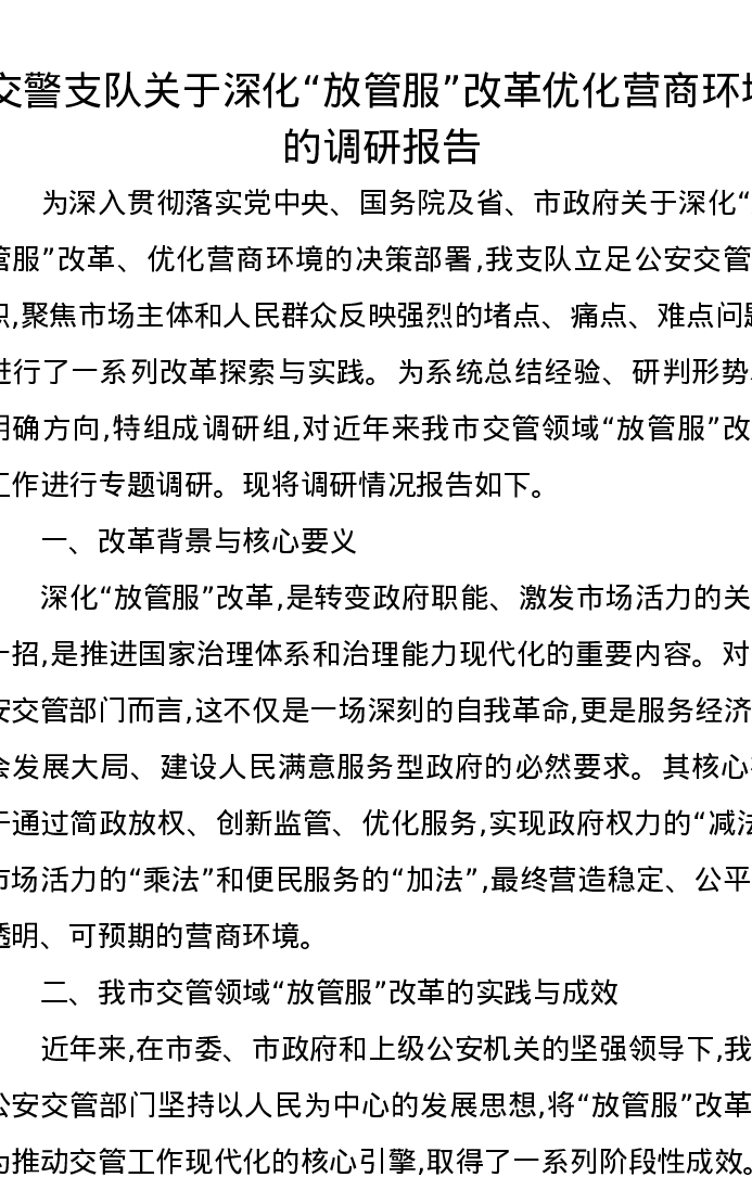 交警支队关于深化“放管服”改革优化营商环境的调研报告