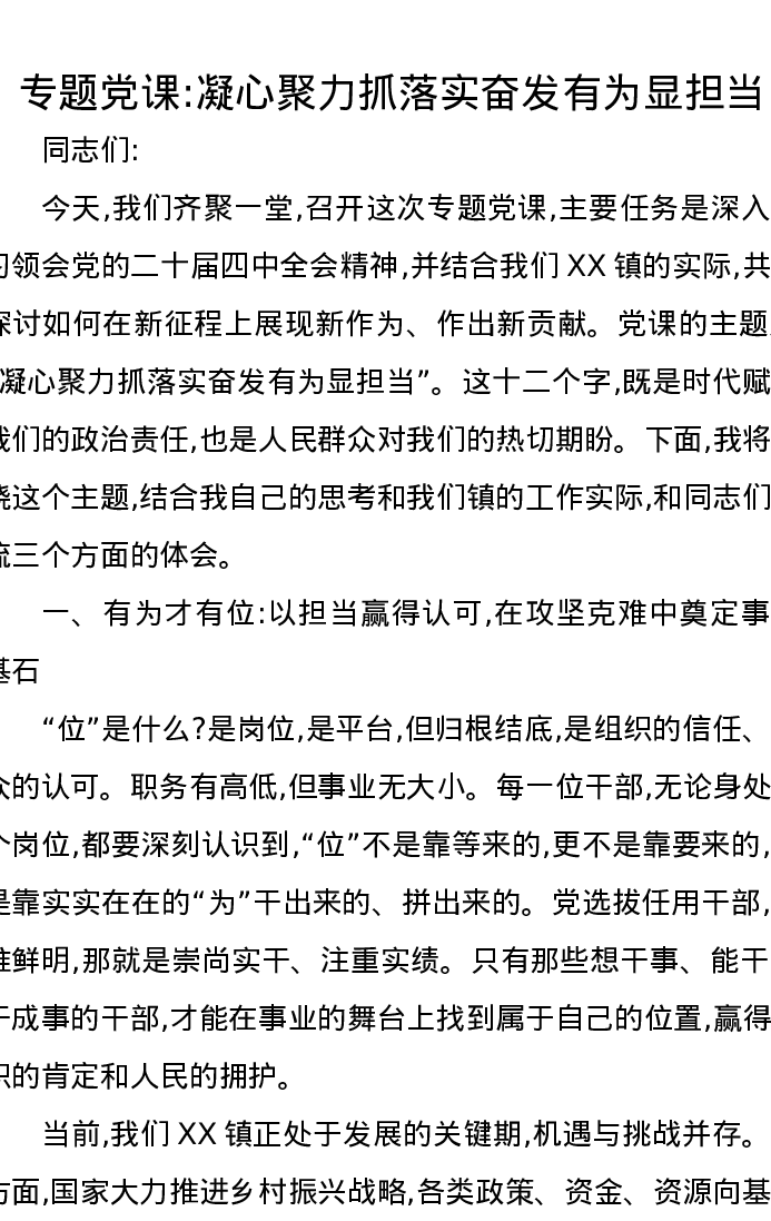党课讲稿:凝心聚力抓落实奋发有为显担当