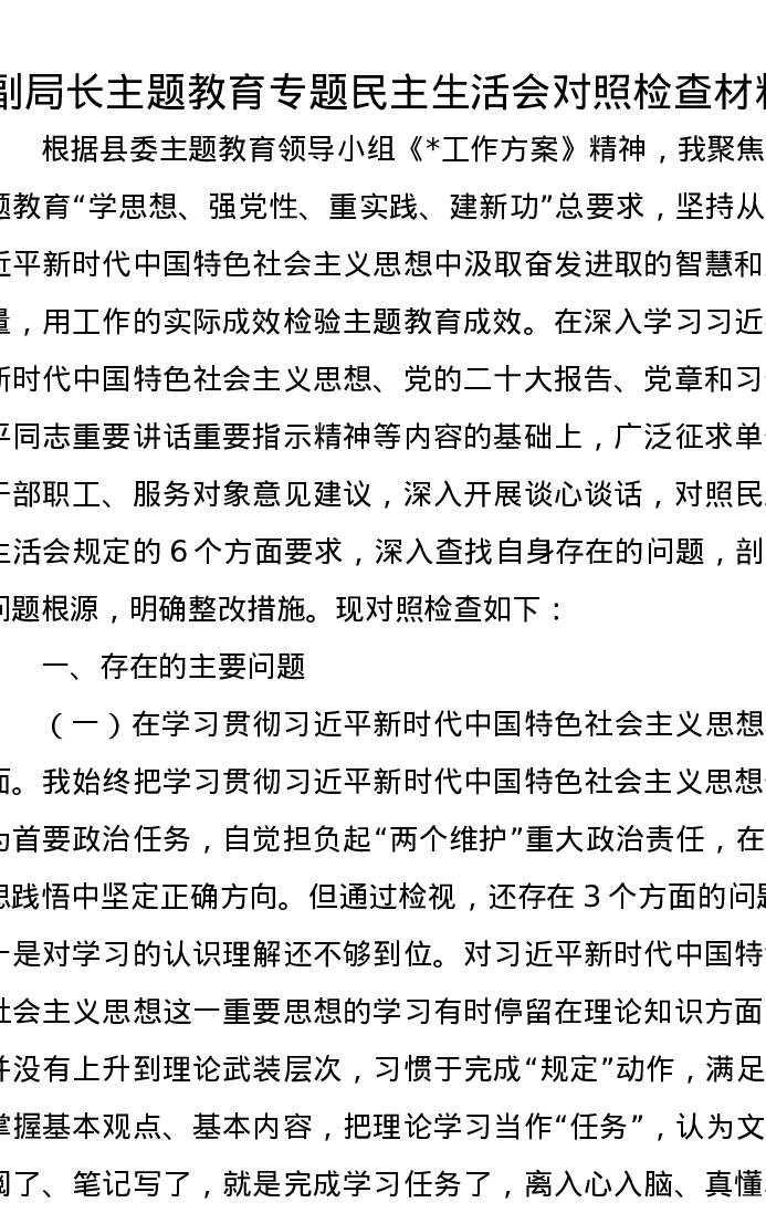 副局长主题教育专题xxxxx对照检查材料