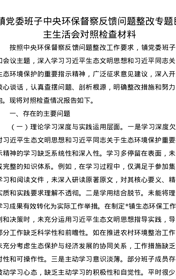 镇党委班子中央环保督察反馈问题整改专题xxxxx对照检查材料