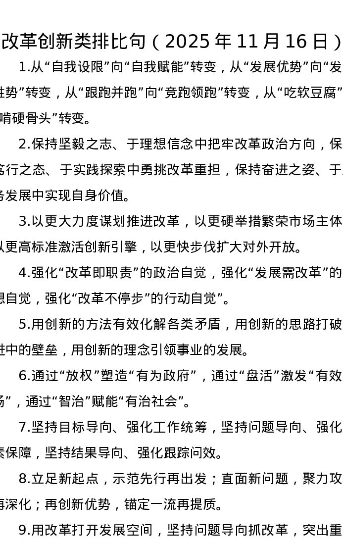 改革创新类排比句(2025年11月16日)