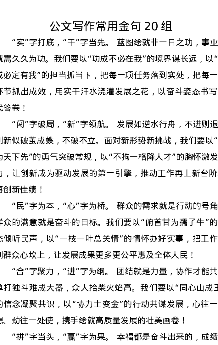 公文写作常用金句20组