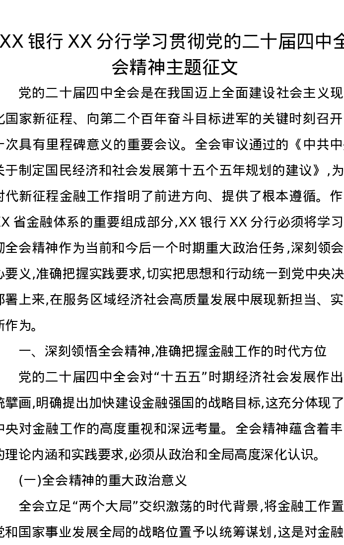 XX银行XX分行学习贯彻党的二十届四中全会精神主题征文