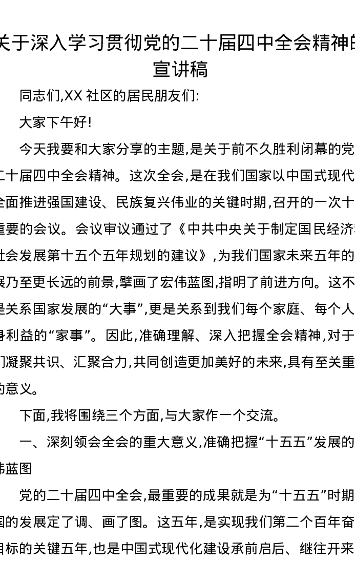 关于深入学习贯彻党的二十届四中全会精神的宣讲稿