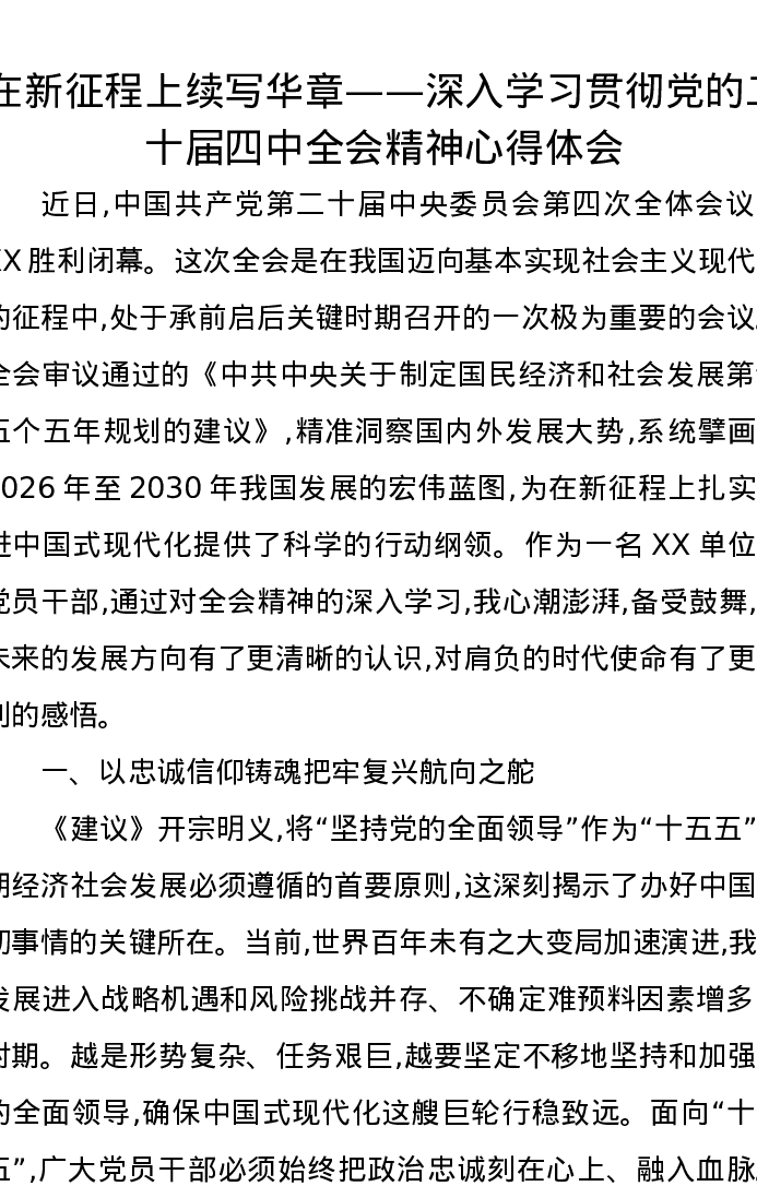 在新征程上续写华章——深入学习贯彻党的二十届四中全会精神心得体会