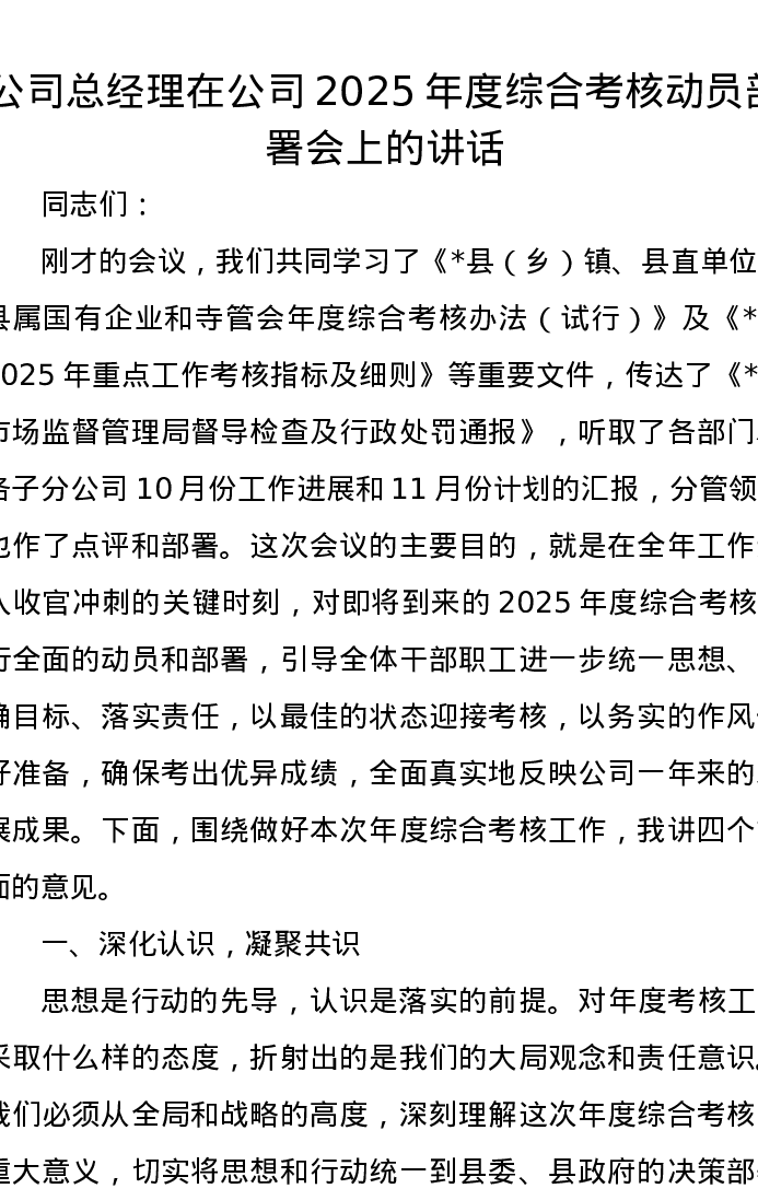公司总经理在公司2025年度综合考核动员部署会上的讲话