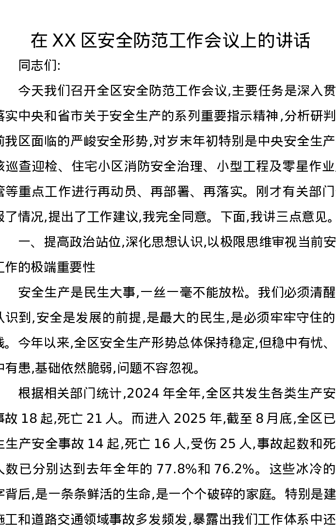 在XX区安全防范工作会议上的讲话