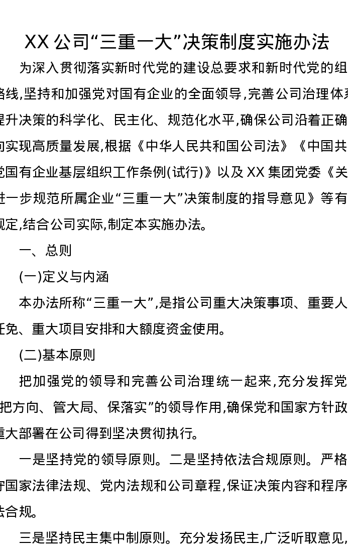XX公司“三重一大”决策制度实施办法