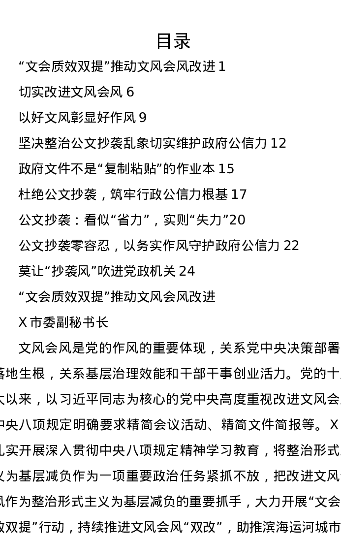 公文抄袭问题专项整治、改进文风素材汇编9篇